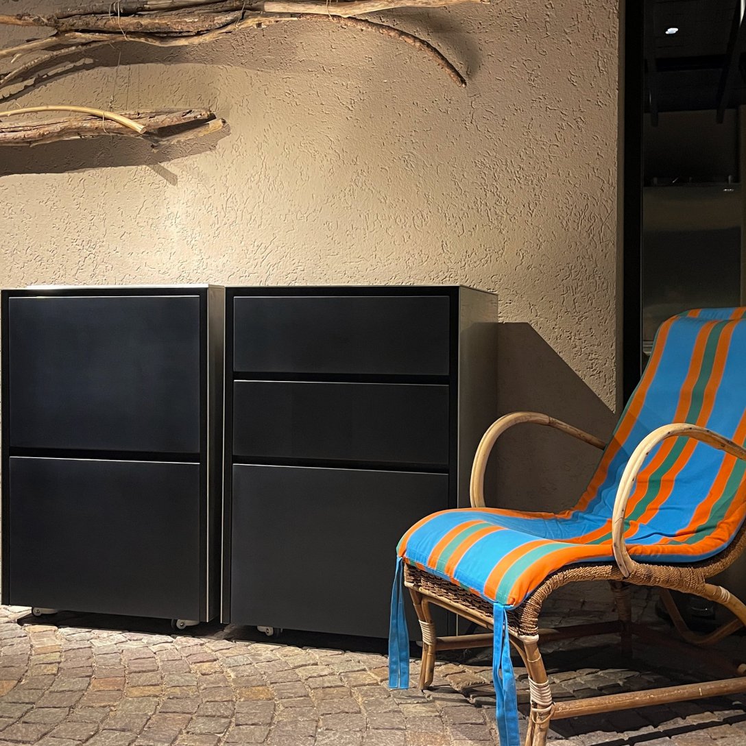 Die Küche für Terrassen von JOKODOMUS gestaltet das Ambiente mit erlesenem Geschmack und verwandelt die Terrasse in den perfekten Ort für Ihre schönsten Momente. Genießen Sie nach Ihrem Arbeitstag den erfrischenden Sommerabend zu Hause und betrachten Sie von Ihrer Terrasse den Sonnenuntergang. Dazu etwas Saisongemüse und ein Fischfilet direkt vom Teppanyaki, begleitet von einem Kelch Pinot Grigio aus dem Outdoor-Kühlschrank …