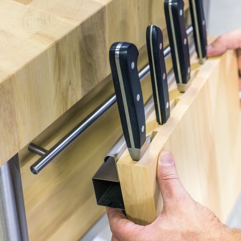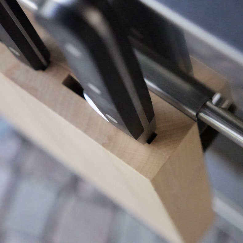 Seitlicher Messerhalter Weißbuche für Hängesystem Auxilium.