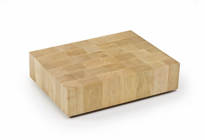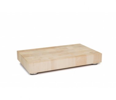 Ploc ___ Chopping board from solid end grain hornbeam; finger joint technique to assure utmost strength. With stainless steel and rubber feet.
