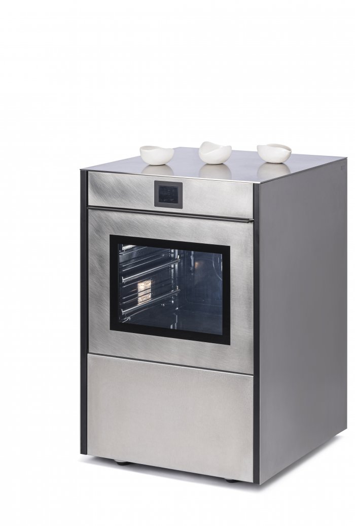 ONO four - acier inoxydable 316. Chariot de cuisine en acier inoxydable mat de gamme ONO avec four et un tiroir. Le plan de travail en acier inoxydable massif 4 mm est robuste et résistant. Le tiroir est sans poignée et peut être extrait pour nettoyage. Intérieur complètement noir. Le module est sur rôles cachés (avec frein et réglage de la hauteur). Le câble de connexion se trouve au dessous du fond du module. Four Multiprogram • touch screen • 10 fonctions • 16 programmes • capteur de température • 3 tablettes coulissantes • température maximale 250 °C • capacité 65 litres