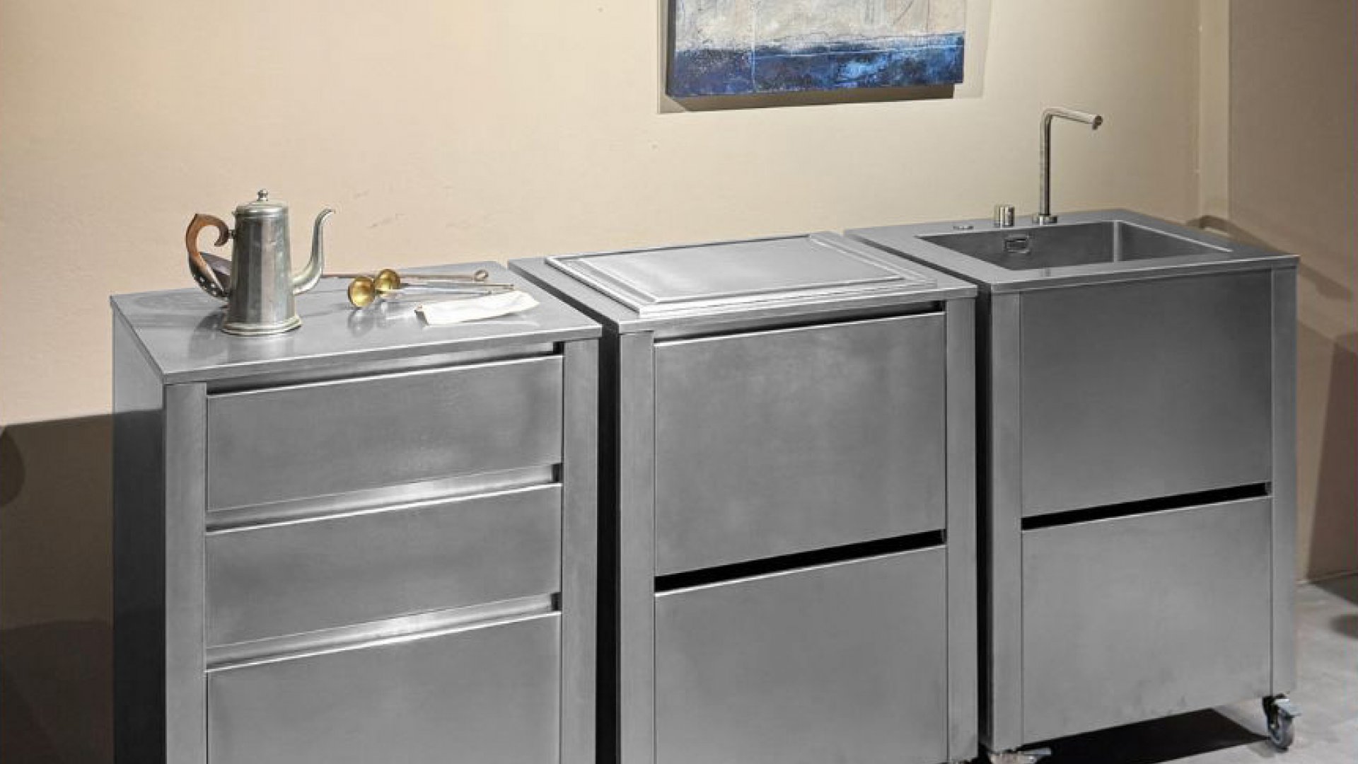 Grazie alle comode ruote di serie, tutti i moduli della serie CUN possono essere spostati a piacimento. Ed ecco che la cucina è all’aperto, sulle sponde del lago, pronta per allegre serate di vacanza con la famiglia e gli amici, in terrazza oppure in giardino.
