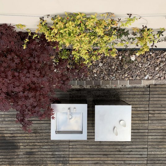 Un design filigrano, combinato con una finitura di superficie opaca „vintage“, conferisce ai moduli della cucina ONO una nota visiva speciale. La cucina outdoor ONO è realizzata in acciaio inossidabile AISI 316 di grado marino.