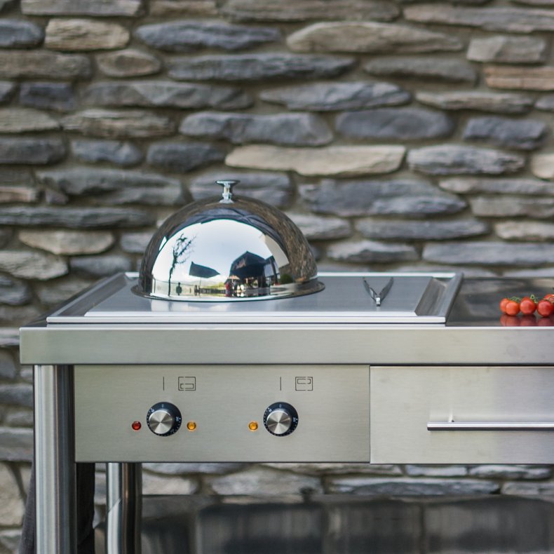 Perfettamente integrato: cucina elegante all'aperto e all'interno